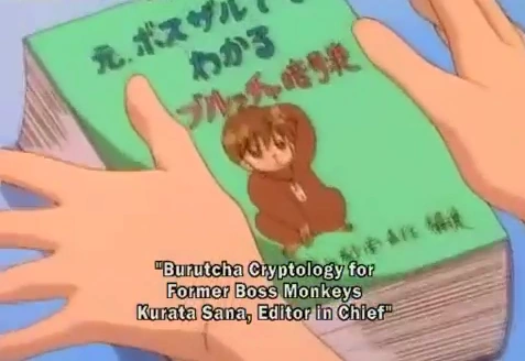 - Sana gave Akito a code book intended for decoding messages sent over Burutcha. It was entitled Burutcha Cryptology for Former Boss Monkeys, and Sana was Editor in Chief of the book.
