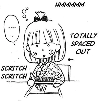 Obana's Incoherent Babbling "Hello! It's me, Obana! How are you doing? So, I made it to a third book thanks to all of your support! I can't believe I've kept the series going for over a year. It isn't easy, but I'm having fun doing it. I can tell from all the great fan mail you send that you all love the series – but I think I love it even more than you! Hee-hee. When these books are put together from the original comics, I tried to fix things. But I confess, sometimes I just leave them, because it's so much work! (Sorry!) so just enjoy them the way they are. Hee-hee. For example: I drew Misako's book backwards. Things like that. I checked the pages over and over but still I keep missing things. Man..."