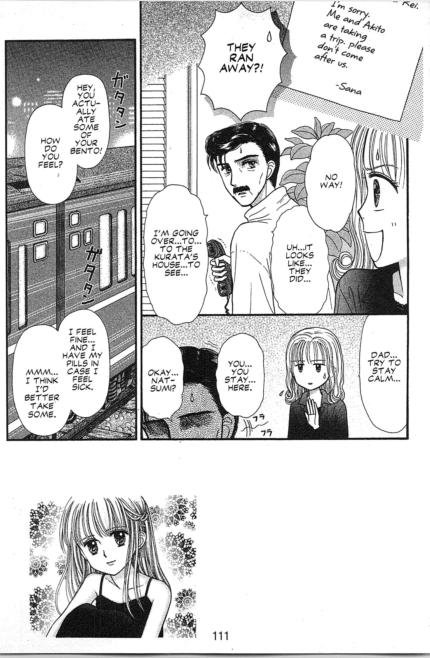 Mr. Hayama has called the Kurata household, where they both confirm Akito and Sana have run away. Natsumi is shocked, and is told to stay home while Mr. Hayama goes to the Kurata's.